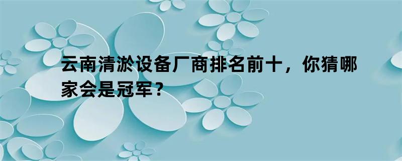 云南清淤设备厂商排名前十,你猜哪家会是冠军?