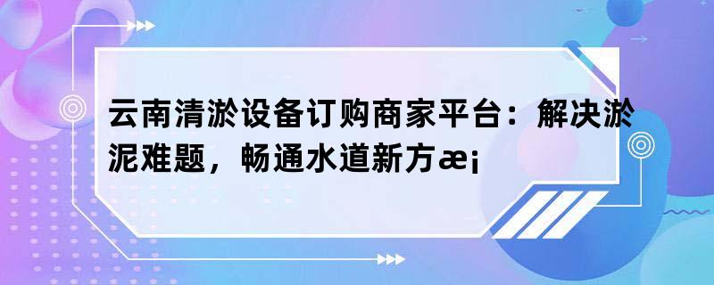 云南清淤设备订购商家平台:解决淤泥难题,畅通水道新方案!