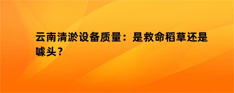 云南清淤设备质量:是救命稻草还是噱头?