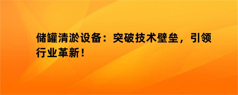 储罐清淤设备:突破技术壁垒,引领行业革新!