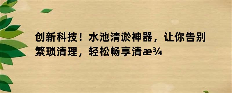 创新科技!水池清淤神器,让你告别繁琐清理,轻松畅享清澈水池!