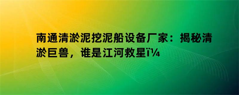 南通清淤泥挖泥船设备厂家:揭秘清淤巨兽,谁是江河救星?