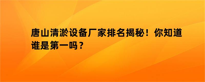 唐山清淤设备厂家排名揭秘!你知道谁是第一吗?