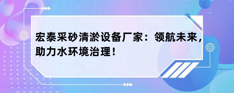 宏泰采砂清淤设备厂家:领航未来,助力水环境治理!