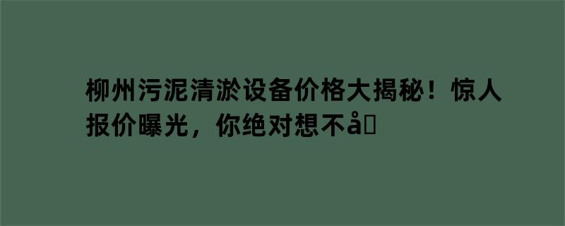 柳州污泥清淤设备价格大揭秘!惊人报价曝光,你绝对想不到的超值优惠!