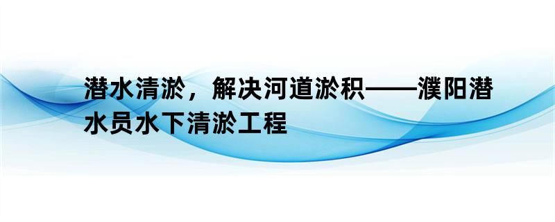 潜水清淤,解决河道淤积——濮阳潜水员水下清淤工程