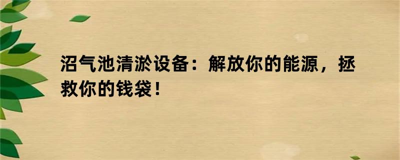 沼气池清淤设备:解放你的能源,拯救你的钱袋!