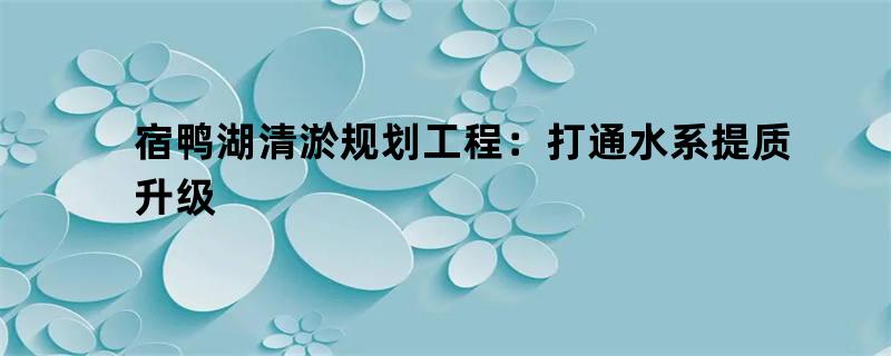 宿鸭湖清淤规划工程:打通水系提质升级