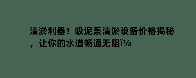 清淤利器!吸泥泵清淤设备价格揭秘,让你的水道畅通无阻!