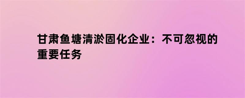 甘肃鱼塘清淤固化企业:不可忽视的重要任务