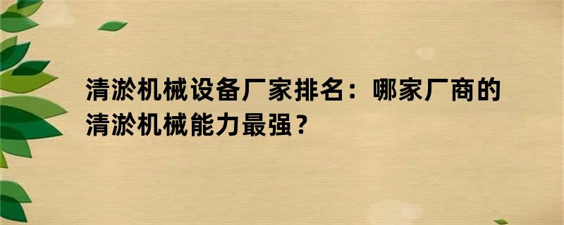 清淤机械设备厂家排名:哪家厂商的清淤机械能力最强?