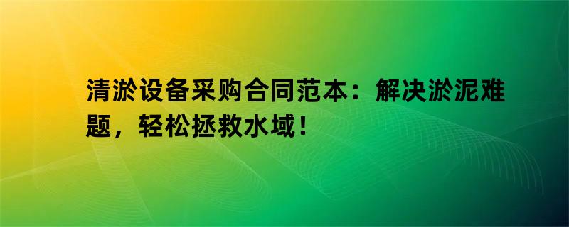 清淤设备采购合同范本:解决淤泥难题,轻松拯救水域!