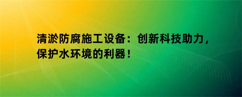 清淤防腐施工设备:创新科技助力,保护水环境的利器!