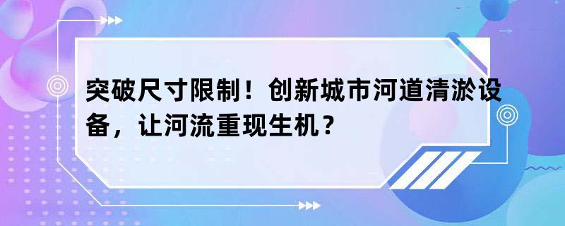 突破尺寸限制!创新城市河道清淤设备,让河流重现生机?