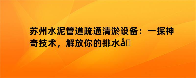 苏州水泥管道疏通清淤设备:一探神奇技术,解放你的排水困扰!