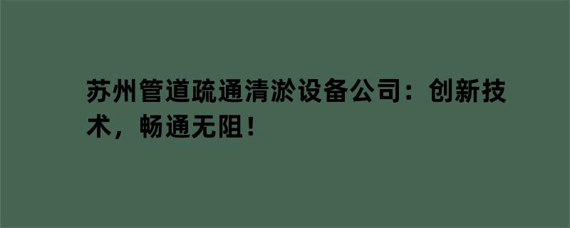 苏州管道疏通清淤设备公司:创新技术,畅通无阻!