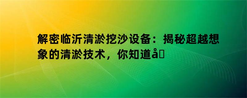 解密临沂清淤挖沙设备:揭秘超越想象的清淤技术,你知道吗?
