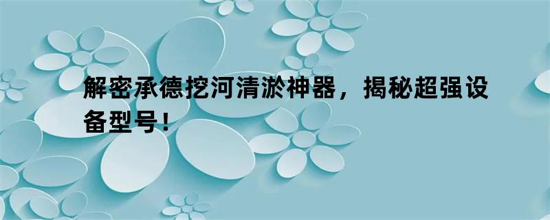 解密承德挖河清淤神器,揭秘超强设备型号!