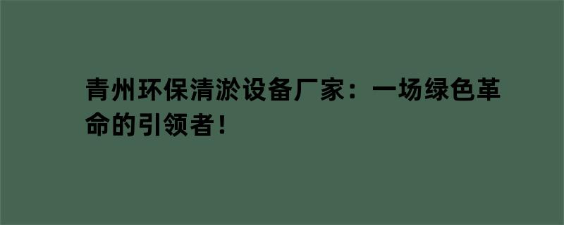 青州环保清淤设备厂家:一场绿色革命的引领者!