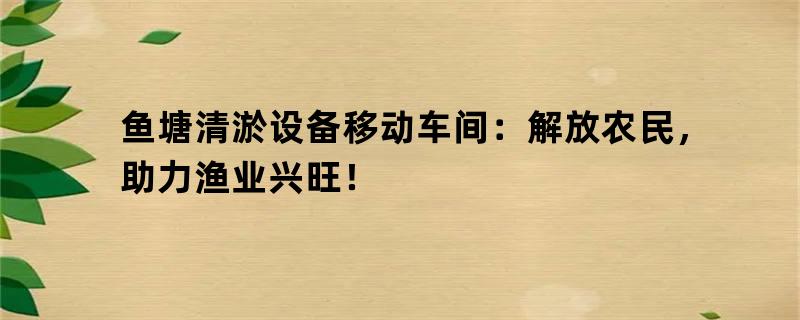 鱼塘清淤设备移动车间:解放农民,助力渔业兴旺!
