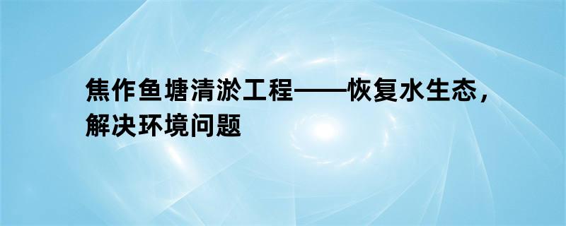 焦作鱼塘清淤工程的目的是恢复鱼塘水生态,改善环境质量,提高水质标准,保护当地的生态环境和生态资源。焦作市认识到这一重要性,因为一个良好的水生态环境对于保护物种、调节气候、净化大气等方面都具有至关重要的意义。