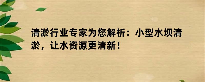 小型水坝作为我们日常生活中重要的水资源储存和利用设施,其清淤问题也备受关注。本文将由清淤行业专家为您解析小型水坝清淤的过程与技术,旨在提高读者对于水资源清洁利用的认识。