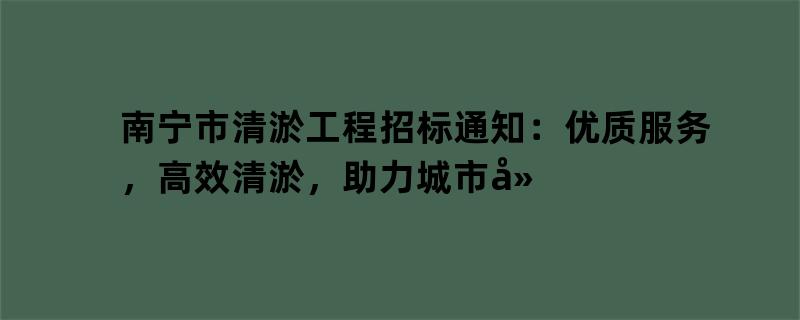 南宁市清淤工程招标通知:优质服务,高效清淤,助力城市建设!