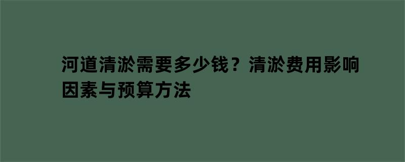 河道清淤需要多少钱?清淤费用影响因素与预算方法