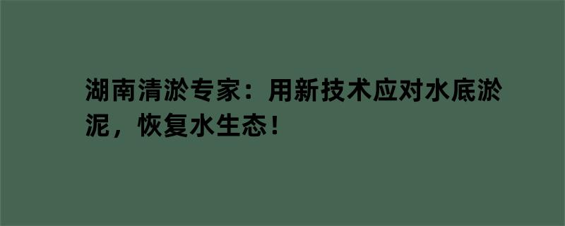 湖南清淤专家:用新技术应对水底淤泥,恢复水生态!
