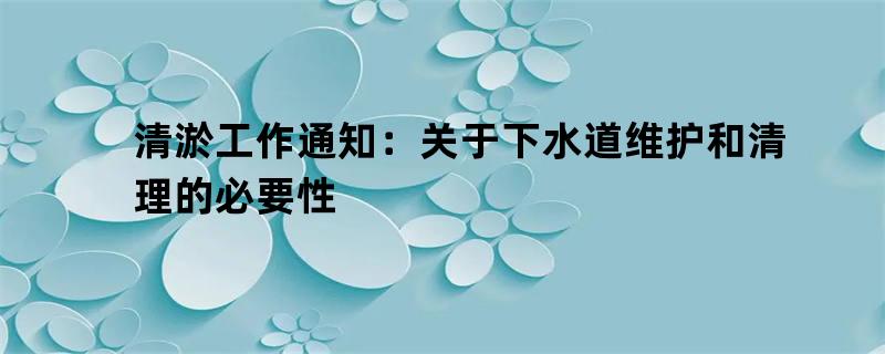 清淤工作通知:关于下水道维护和清理的必要性