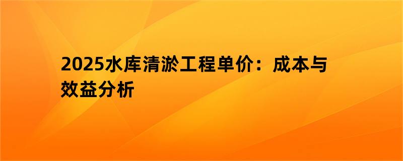 2025年水库清淤工程单价:成本与效益分析