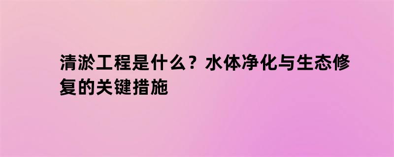 问题2:清淤工程如何实现水体净化?有哪些关键技术?