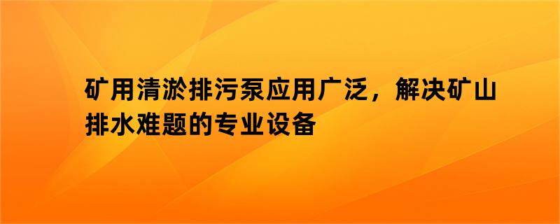 矿山开采过程中,排水与清淤始终是保障生产安全、提高作业效率的核心环节。传统排水设备在应对高固体含量、高腐蚀性、高风险环境时,常面临效率低下、故障频发、维护成本高昂等问题。而矿用清淤排污泵的出现,通过技术创新与结构优化,成为解决矿山排水难题的关键设备。本文将围绕其应用背景、技术优势、实际挑战及趋势展开分析,揭示这一设备如何重塑矿山排水领域的解决方案。