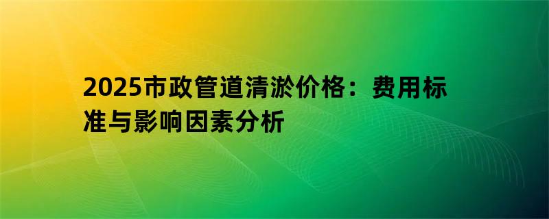 2025市政管道清淤价格:费用标准与影响因素分析