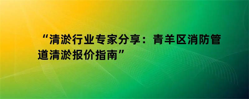 “清淤行业专家分享:青羊区消防管道清淤报价指南”