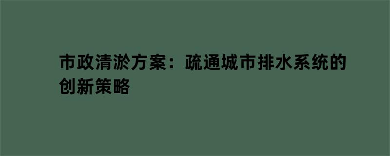 市政清淤方案:疏通城市排水系统的创新策略