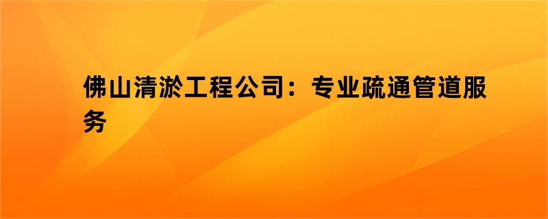 佛山清淤工程公司:专业疏通管道服务的实践与创新