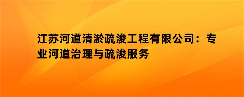 江苏河道清淤疏浚工程有限公司:专业河道治理与疏浚服务的实践与创新