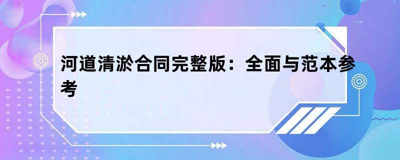 河道清淤合同完整版:全面与范本参考