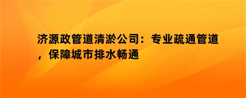 济源政管道清淤公司:专业疏通管道,保障城市排水畅通