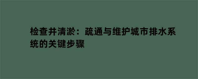 检查井清淤:疏通与维护城市排水系统的关键步骤