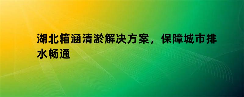 湖北箱涵清淤解决方案:保障城市排水畅通的实践与创新