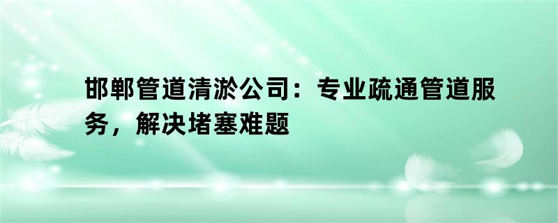 邯郸管道清淤公司:专业疏通管道服务,解决堵塞难题