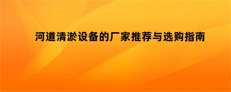 河道清淤设备的厂家推荐与选购指南