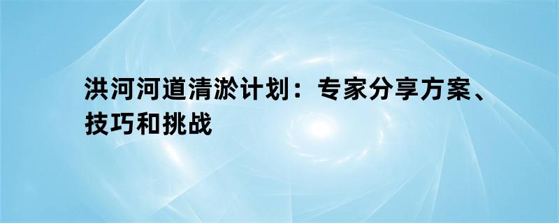 洪河河道清淤计划:专家分享方案、技巧和挑战