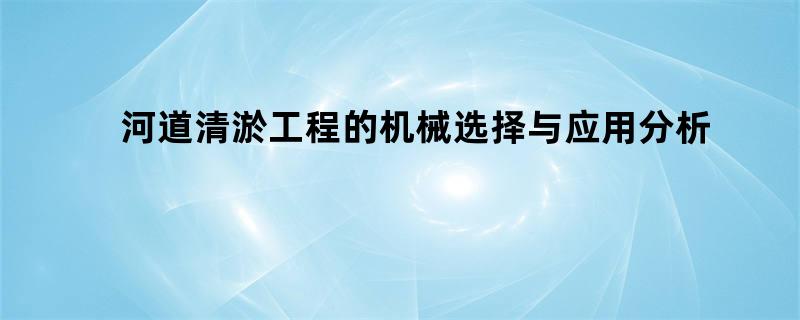 河道清淤工程的机械选择与应用分析