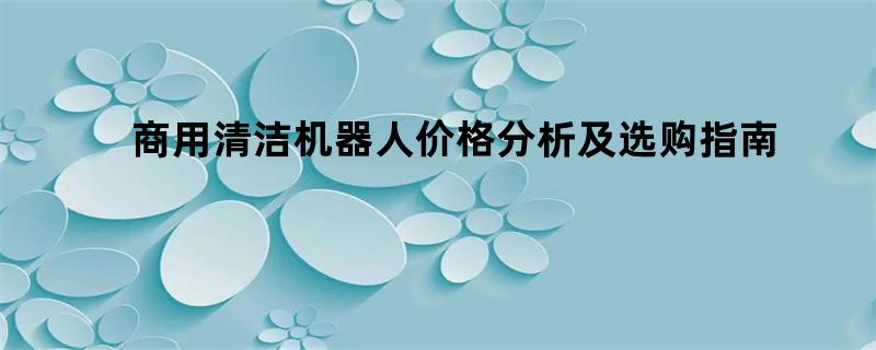 商用清洁机器人价格分析及选购指南:如何科学决策,实现清洁?