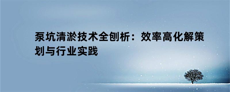 泵坑清淤技术全刨析:效率高化解策划与行业实践