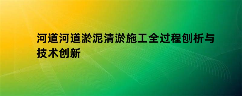 河道河道淤泥清淤施工全过程刨析与技术创新