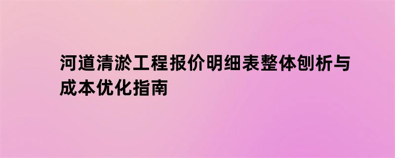 河道清淤工程报价明细表整体刨析与成本优化指南